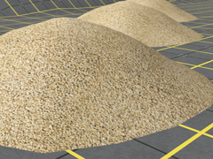 Gravel and earth for construction in piles or heaps. Gravel in a pile 9m high and 38m long, white versión 6A. It is a SPLINE.