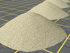 Gravel and earth for construction in piles or heaps. Gravel in a pile 7m high and 30m long, white versión 6C. It is a SPLINE.