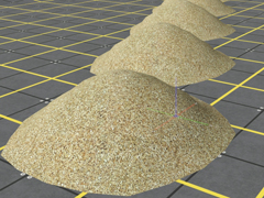 Gravel and earth for construction in piles or heaps. Gravel in a pile 5m high and 20m long, white versión 6D. It is a SPLINE.