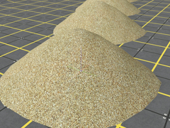 Gravel and earth for construction in piles or heaps. Gravel in a pile 7m high and 30m long, white versión 6D. It is a SPLINE.