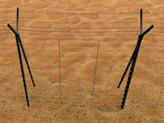 Military equipment for anti-tank and personal defence. Classic metal fence with 21 barbed wires (X21), 3m long and 3.7m high, almost new. It has 4 meshes or lods. It is a SPLINE.