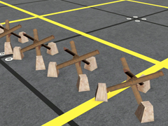 Military equipment for anti-tank defence. Czech hedgehog is an anti-tank defence obstacle made of angled metal bars, bolted and/or welded. Version with nuts and bolts (Nb) and angled hitch (A), fixed to the ground by concrete blocks (C) and rusty looking, version 1. 4 Lods. Approximate version to the real one. It is a SPLINE.