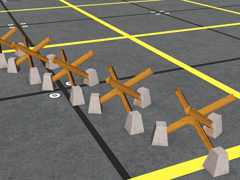 Military equipment for anti-tank defence. Czech hedgehog is an anti-tank defence obstacle made of angled metal bars, bolted and/or welded. Version with nuts and bolts (Nb) and round hitch (R), fixed to the ground by concrete blocks (C) and rusty looking, version 2. 4 Lods. Approximate version to the real one. It is a SPLINE.