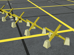 Military equipment for anti-tank defence. Czech hedgehog is an anti-tank defence obstacle made of angled metal bars, bolted and/or welded. Version with nuts and bolts (Nb) and angled hitch (A), fixed to the ground by concrete blocks (C) and rusty looking, version 3. 4 Lods. Approximate version to the real one. It is a SPLINE.