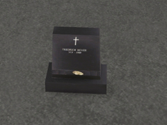 Graves for a British and American style cemetery (B&A). Graves with stone or marble headstones. Traditional upright or vertical tombstones (·V), consist of two stone slabs: the base slab and the tablet slab. The tablet part stands erect on top of the base having information about the deceased’s name, age, etc. They can be manufactured in various styles and forms of finish. Clean, new or nearly new tombstone (N.). Version 30.