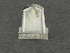 Graves for a British and American style cemetery (B&A). Graves with stone or marble headstones. Traditional upright or vertical tombstones (·V), consist of two stone slabs: the base slab and the tablet slab. The tablet part stands erect on top of the base having information about the deceased’s name, age, etc. They can be manufactured in various styles and forms of finish. Clean, new or nearly new tombstone (N.). Version 62.