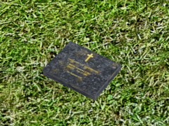 Graves for a British and American style cemetery (B&A). Graves with stone or marble headstones. Ground level tombstone, horizontal and flat headstones or lawn-level markers (·H), in a rectangular shape with a slab thickness of approximately 4 inches or 10 cm. They symbolize simplicity and a modest focus on the memory of the deceased. Clean, new or almost new tombstone (N.). Version 06.