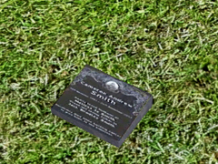 Graves for a British and American style cemetery (B&A). Graves with stone or marble headstones. Ground level tombstone, horizontal and flat headstones or lawn-level markers (·H), in a rectangular shape with a slab thickness of approximately 4 inches or 10 cm. They symbolize simplicity and a modest focus on the memory of the deceased. Clean, new or almost new tombstone (N.). Version 14.