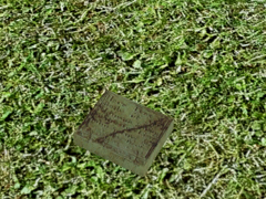 Graves for a British and American style cemetery (B&A). Graves with stone or marble headstones. Ground level tombstone, horizontal and flat headstones or lawn-level markers (·H), in a rectangular shape with a slab thickness of approximately 4 inches or 10 cm. They symbolize simplicity and a modest focus on the memory of the deceased. They are classic, old, abandoned or dirty tombstones (Cl.). Version 04.