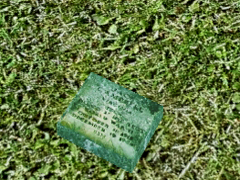 Graves for a British and American style cemetery (B&A). Graves with stone or marble headstones. Ground level tombstone, horizontal and flat headstones or lawn-level markers (·H), in a rectangular shape with a slab thickness of approximately 4 inches or 10 cm. They symbolize simplicity and a modest focus on the memory of the deceased. They are classic, old, abandoned or dirty tombstones (Cl.). Version 06.