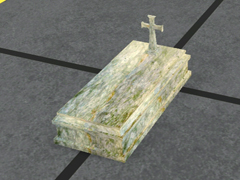 Graves for a British and American (B&A) style cemetery. These are stone or marble funerary monuments in a classical style and larger than the tombs with vertical and horizontal headstones, they are typical of wealthy or famous families. With various sizes and colors of stones, some clean and others dirty or abandoned. Version 8c.