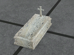 Graves for a British and American (B&A) style cemetery. These are stone or marble funerary monuments in a classical style and larger than the tombs with vertical and horizontal headstones, they are typical of wealthy or famous families. With various sizes and colors of stones, some clean and others dirty or abandoned. Version 8f.