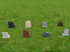Graves for a British and American (B&A) style cemetery. Tombs with stone or marble tombstones of modern style, current or almost new (N.), in varied groups (Gr) and with different quantities, the tombstones are in vertical position (V) on the ground. Version 9 with 8 Tombs.