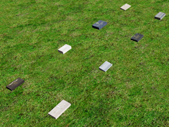 Graves for a British and American (B&A) style cemetery. Tombs with stone or marble tombstones of modern style, current or almost new (N.), in varied groups (Gr) and with different quantities, tombstones are in horizontal (H) or flat position on the ground. Version 3 with 8 Tombs.