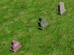Graves for a British and American (B&A) style cemetery. Tombs with stone or marble tombstones of classical style, old or abandoned (Cl.), in varied groups (Gr) and with different quantities, the tombstones are in vertical position (V) on the ground. Version 0 with 3 Tombs.