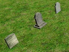 Graves for a British and American (B&A) style cemetery. Tombs with stone or marble tombstones of classical style, old or abandoned (Cl.), in varied groups (Gr) and with different quantities, the tombstones are in vertical position (V) on the ground. Version 1 with 3 Tombs.
