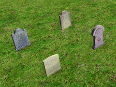Graves for a British and American (B&A) style cemetery. Tombs with stone or marble tombstones of classical style, old or abandoned (Cl.), in varied groups (Gr) and with different quantities, the tombstones are in vertical position (V) on the ground. Version 3 with 4 Tombs.