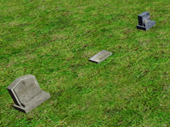Graves for a British and American (B&A) style cemetery. Tombs with stone or marble tombstones of classical style, old or abandoned (Cl.), in varied groups (Gr) and with different quantities, the tombstones are mixed (Mix) both vertically and horizontally or flat on the ground. Version 1 with 3 Tombs.