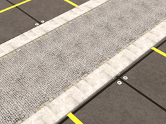 Roadway with stone or basalt pavers or cobblestones, with stone curb. It is a 6 m long and 6.6 m wide spline. No traffic. Versión 2b. With sidewalks made of concrete slabs, 1.5m wide.
