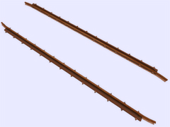 It is a track object: To make railway crossings (diamond junction or diamond crossing) at the same level. Length 5m, rail gauge 1435mm, with 13 bolts with union screws from the rail to the check rail (model B) every 40cm. Version or finish 1. For straight track and level with the ground. No spikes on the checkrails. Rail crossing designed for rail 19.8 kg per meter, approximately 40 pounds per yard, suitable for light rails. Rail 10 cm high. New version with the addition of the ''follow-gradient 1'' tag, to adapt to the inclinations of the railway track.
