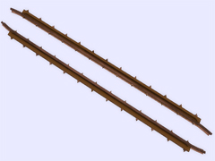 It is a track object: To make railway crossings (diamond junction or diamond crossing) at the same level. Length 5m, rail gauge 610mm, with 13 bolts with union screws from the rail to the check rail (model B) every 40cm. Version or finish 2. For straight track and level with the ground. No spikes on the checkrails. Rail crossing designed for rail 19.8 kg per meter, approximately 40 pounds per yard, suitable for light rails. Rail 10 cm high. New version with the addition of the ''follow-gradient 1'' tag, to adapt to the inclinations of the railway track.