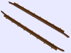 It is a track object: To make railway crossings (diamond junction or diamond crossing) at the same level. Length 3.2m, rail gauge 914mm, with 8 bolts with union screws from the rail to the check rail (model B) every 40cm. Version or finish 2. For straight track and level with the ground. No spikes on the checkrails. Rail crossing designed for rail 19.8 kg per meter, approximately 40 pounds per yard, suitable for light rails. Rail 10 cm high. New version with the addition of the ''follow-gradient 1'' tag, to adapt to the inclinations of the railway track.