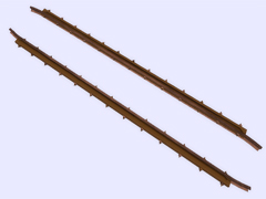 It is a track object: To make railway crossings (diamond junction or diamond crossing) at the same level. Length 5m, rail gauge 914mm, with 13 bolts with union screws from the rail to the check rail (model B) every 40cm. Version or finish 2. For straight track and level with the ground. No spikes on the checkrails. Rail crossing designed for rail 19.8 kg per meter, approximately 40 pounds per yard, suitable for light rails. Rail 10 cm high. New version with the addition of the ''follow-gradient 1'' tag, to adapt to the inclinations of the railway track.