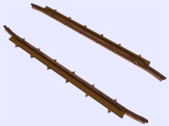 It is a track object: To make railway crossings (diamond junction or diamond crossing) at the same level. Length 2.4m, rail gauge 1000mm, with 6 bolts with union screws from the rail to the check rail (model B) every 40cm. Version or finish 2. For straight track and level with the ground. No spikes on the checkrails. Rail crossing designed for rail 19.8 kg per meter, approximately 40 pounds per yard, suitable for light rails. Rail 10 cm high. New version with the addition of the ''follow-gradient 1'' tag, to adapt to the inclinations of the railway track.