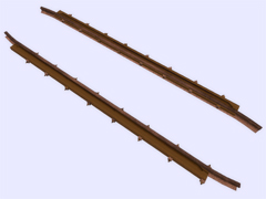 It is a track object: To make railway crossings (diamond junction or diamond crossing) at the same level. Length 3.2m, rail gauge 1000mm, with 8 bolts with union screws from the rail to the check rail (model B) every 40cm. Version or finish 2. For straight track and level with the ground. No spikes on the checkrails. Rail crossing designed for rail 19.8 kg per meter, approximately 40 pounds per yard, suitable for light rails. Rail 10 cm high. New version with the addition of the ''follow-gradient 1'' tag, to adapt to the inclinations of the railway track.