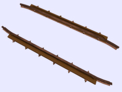 It is a track object: To make railway crossings (diamond junction or diamond crossing) at the same level. Length 2.4m, rail gauge 1067mm, with 6 bolts with union screws from the rail to the check rail (model B) every 40cm. Version or finish 2. For straight track and level with the ground. No spikes on the checkrails. Rail crossing designed for rail 19.8 kg per meter, approximately 40 pounds per yard, suitable for light rails. Rail 10 cm high. New version with the addition of the ''follow-gradient 1'' tag, to adapt to the inclinations of the railway track.