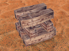 Seven closed coffins made of wooden planks, unpainted, on the ground, version B