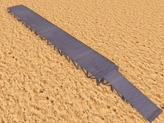 Railroad platform for loading and unloading goods, made of wood, in the style of the old west, with an access ramp. Dimensions: 30m long, 4m wide and 1.25m high. Version 4. In this version the wood textures are blue-gray