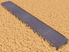 Railroad platform for loading and unloading goods, made of wood, in the style of the old west, without ramps. Dimensions: 30m long, 4m wide and 1.25m high. Version 4. In this version the wood textures are blue-gray