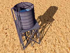 Water tower, made of wood, with a capacity of 60 m3, in the style of the old west. It is part of the grain elevator complex. Dimensions: 7m high, 3m wide and 3m long. It is not interactive or functional. Version 4. In this version the wood textures are blue-gray