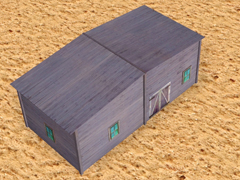 Warehouse and workshop, made of wood, for the grain elevator complex, in the style of the old west. It is part of the grain elevator complex. Version 4. In this version the wood textures are blue-gray