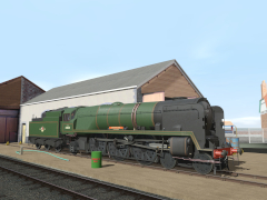 A TRS19 and above steam engine spec for the British Railways Southern Region rebuilt version of O.V.S. Bulleid's 3-cylinder light pacific. Boiler pressure: 250psi. Tractive effort: 27270lbs. This spec. uses real world data and will perform most accurately if used with Stovepipe's e-specs for British rolling stock. Braking values set to emulate vacuum brake performance. Please see the included readme.txt for further information.