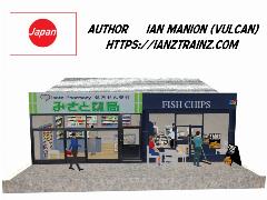 A small combination building, Fish and Chips and Chemist shop. In some of my scenery models I have included attached figures to make them more interesting. If you do not want the figures to show, remove the effects container in the config file.