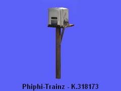Detonateur pour signalisation (ou boite a petards) place a gauche et juste apres un signal carre. Ce modele sur mat haut 80 a 100 cm se place en pleine voie. il contient cinq charges et se declenche electriquement pour avertir le conducteur si le train franchit un signal carre ferme sur les voies a vitesse superieure a 40 km/h et si la securite est engagee. Realise avec le concours de Georges Pinthon.