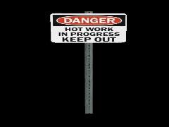 A sign that reads DANGER HOT WORK IN PROGRESS KEEP OUT