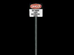 A sign that reads DANGER EXTREME HEAT EXPOSURE AREA