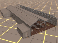 The shed had enclosed frontages with wood-slat gables and double doors on each road. Six smoke chutes were evenly spaced along each road. 2 lean-to extensions along one wall housed a fitting shop, a store, a sign-on room and a meal room.