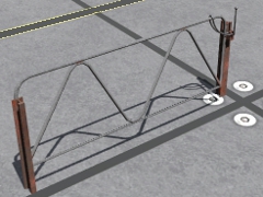 An animated model of a gate protecting a railway crossing for access to private land in rural NSW. The gate opens anti-clockwise.