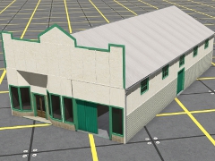In Surveyor mode using each asset instance's Properties Editor, the user can pose the doors, make the front awning invisible and add the business name to the facade.