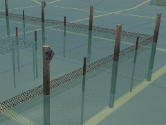 Since this asset has no endposts, it is intended to connect 2 fence corners where the other sides have been formed by <kuid:368725:30117> 'oyster-farm mesh fence, timber posts, with endposts'.