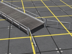 A spline without lead-in fences to represent a 6m-wide timber road bridge. A no-traffic invisible road spline passes over the bridge deck.