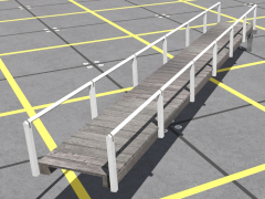 For trestles to support the deck use <kuid:368725:20695> 'wooden trestle bent (pier) for pedestrian bridge, unbutressed single storey, 5ft high for 2m-wide deck' and <kuid:368725:20696> 'wooden trestle bent (pier) for pedestrian bridge, unbutressed single storey, 7ft high for 2m-wide deck'.