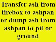 Before issuing a 'drop ash' command option, check the levels of ash in the firebox and ashpan using 'ViewDetails'. If there is empty space in the ashpan, transfer as much firebox ash to the ashpan as possible by first employing the 'transfer' option. If the ashpan is already full, drop ash from the ashpan first, then transfer firebox ash to the now-empty ashpan, and drop ash from the ashpan a second time.