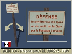 S.N.C.F. sign < It is forbidden to enter the platforms or to leave the station by the level crossing >. This safety sign is usually placed at level crossings near a station. It can tilt sideways ( Object menu > rotate + SHIFT ) - 3d Object FBX/PBR Phiphitrainz 2022.