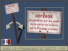 Old S.N.C.F. sign < It is forbidden to enter the platforms or to leave the station by the level crossing >. This safety sign is usually placed at level crossings near a station. It can tilt sideways ( Object menu > rotate + SHIFT ) - 3d Object FBX/PBR Phiphitrainz 2022.