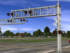 Grade crossing US style 1 track, 4 lanes road, with lights on gantry